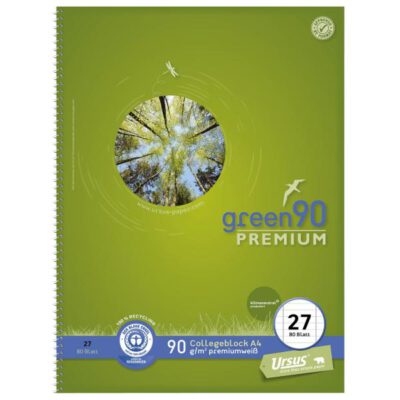 Spiralblock A4 – green90 Premium – 80 Blatt – mit Doppelrand – Liniert